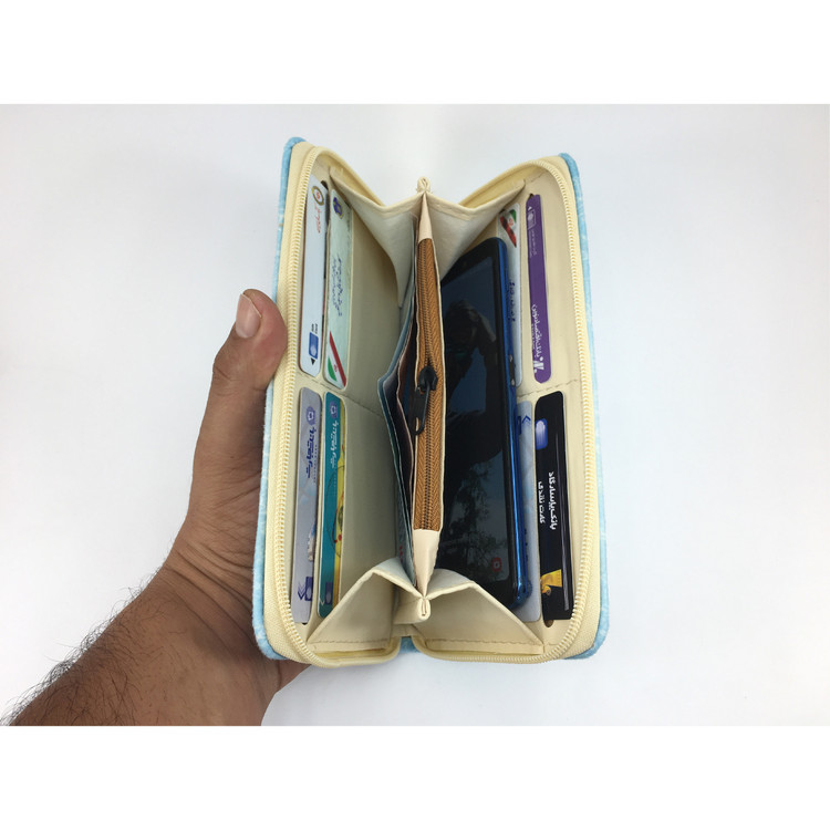 توضیحات محل نگهداری اسکناس: دارای 8 جای کارت اعتباری و 1 جای تلفن همراه و 2 محفظه اسکناس