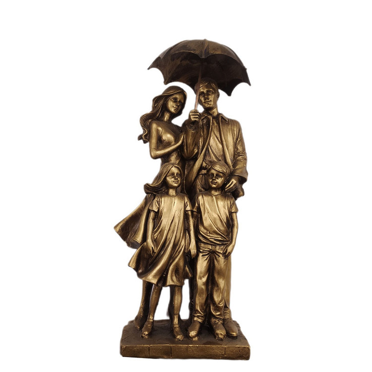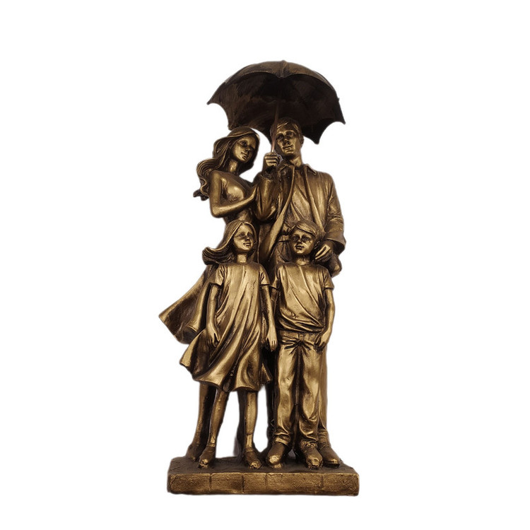 مجسمه مدل خانواده چهار نفره از جنس پلی استر همراه با چتر و بسیار ظریف و زیبا می باشد . در رنگ برنز قابل سفارش است . متشکل از پدر ، مادر ، دو فرزند دختر و پسر است . ضد آب و قابل شستشو ، مناسب جهت دکور منزل ، محل کار و تی وی وال می باشد .