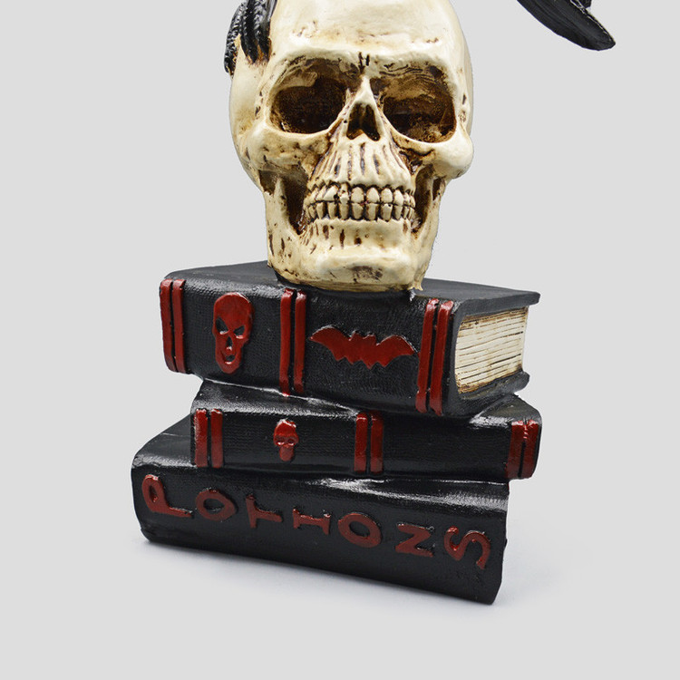 مجسمه های دکوری در اکثر منازل مورد استفاده هستند. طرح های فانتزی این سبک مجسمه ها، طرفداران فراوانی در تمامی گروه ها دارد. مجسمه جمجمه و کلاغ و کتاب مدل Potions کد Psdo539، یک مجسمه جمجمه بوده که یک کلاغ بر روی سر آن نشسته و روی یک کتاب قرار دارد. طرح جمجمه و کلاغ از طرحهای محبوب بین طرفداران اسکلت و تتوکاران میباشد. ارتفاع این مجسمه 35 سانتیمتر بوده و دارای کیفیت تولید و رنگآمیزی بالایی است.