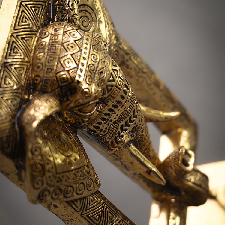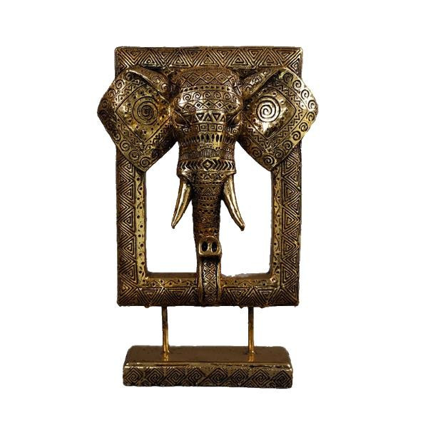 مجسمه تابلو فیل طلایی از جنس پلی استر و فلز که سایز آن طول:24cm، عرض:7cm و ارتفاع:36cm می باشد.