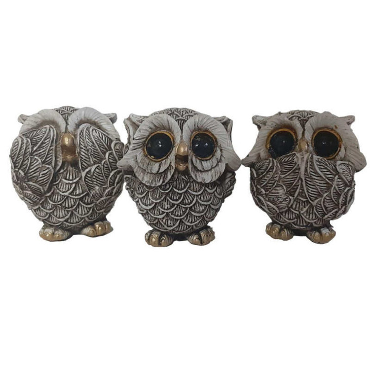 ست سه تایی جغد کور و کر و لال با ارتفاع نه سانت سایز بزرگ یه دکوری پرطرفدار و مقرون به صرفه