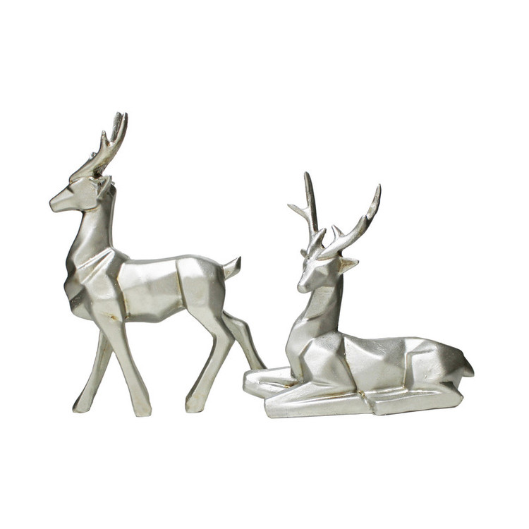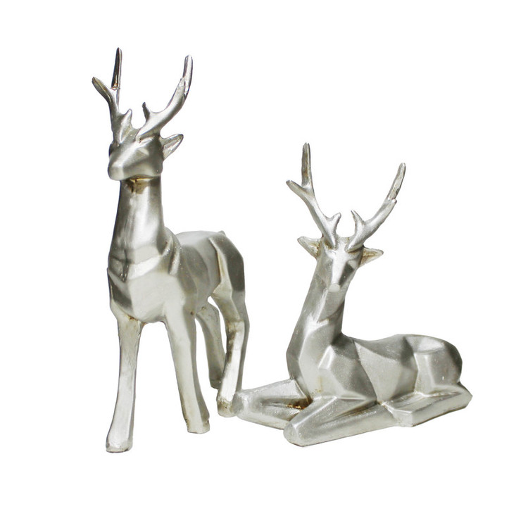 مجسمه گوزن کد 040/1 رنگ نقره ای و قابل شستشو می باشد مناسب کادویی و دیزاین منزل و محل کار است جنس رزین پلی استر می باشد مجموعه 2 عددی که شامل یک گوزن نشسته و یک گوزن ایستاده است