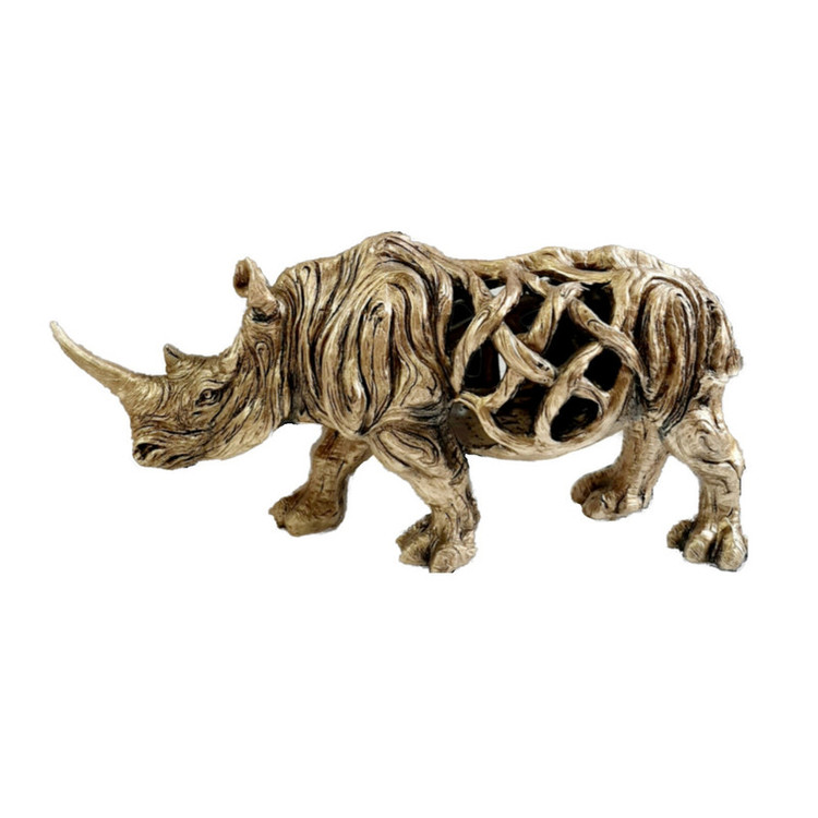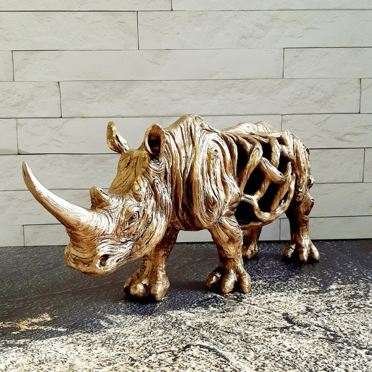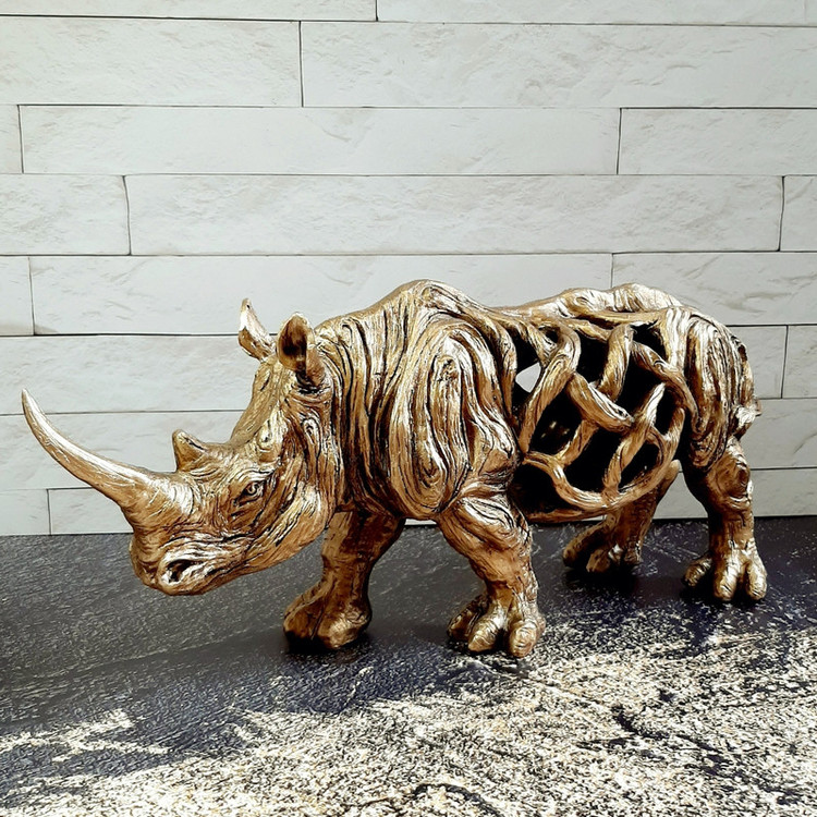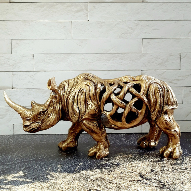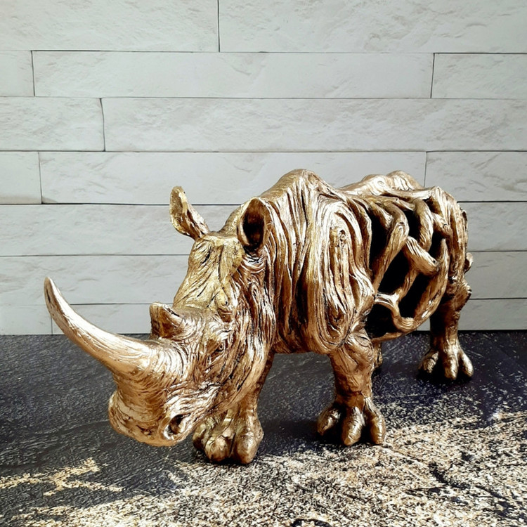 کرگدن عموماً نماد سرسختی و در گاهی ادبیات غرب نشانه تمول و سلامتی ست. مجسمه دکوراتیو کرگدن با سایزی بزرگ و نمای سه بعدی زیبا گرمابخش و تکمیل کننده دکوراسیون می باشد .رنگ طلایی این مجسمه به راحتی با انواع دکور سازگار است.