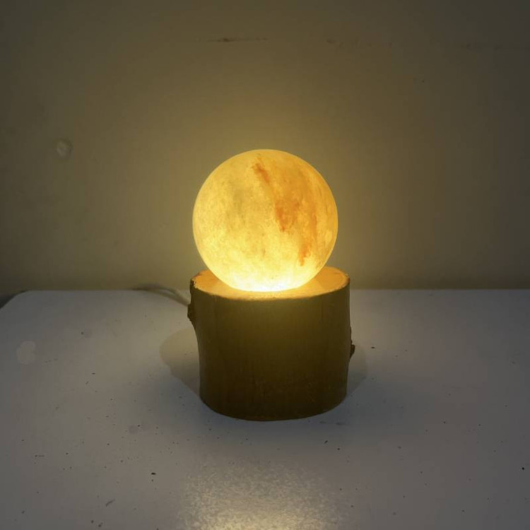 پایه این کالا از جنس چوب گردو است و قطر سنگ نمکی که بر روی ان قرار دارد 6 سانت می باشد.این آباژور به صورت دست ساز و منحصر به فرد است دارای 1 متر سیم و 1 عدد لامپ می باشد و روشنایی آن با برق شهری می باشد