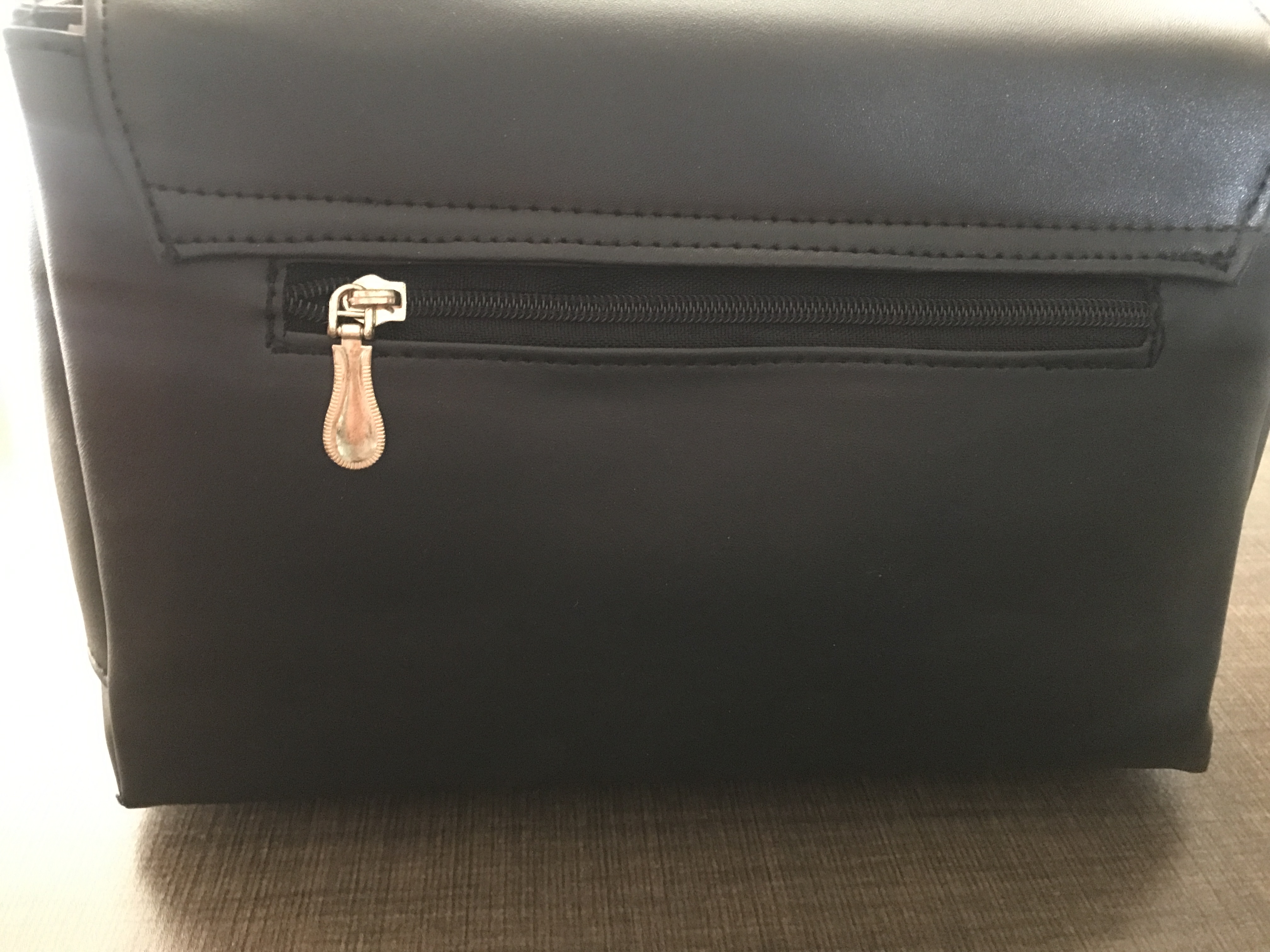 فضای داخلی :زیپ وسط و دو سمت زیپ وسط هم فضای داخلی دارد ویه زیپ کوچک در پشت کیف و یه زیپ کوچک هم داخل کیف